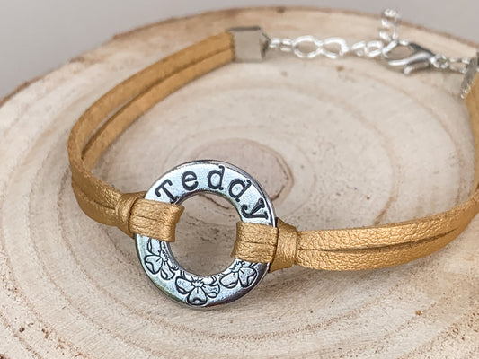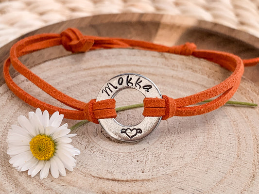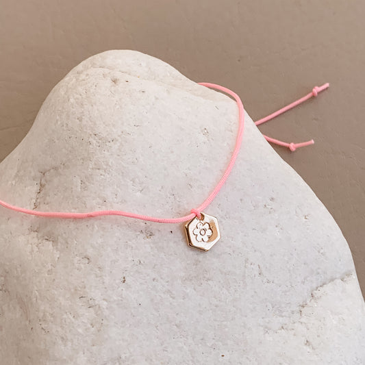 Moxy tags - Daisy - kézzel készült egyedi feliratos karkötő csúszócsomóval