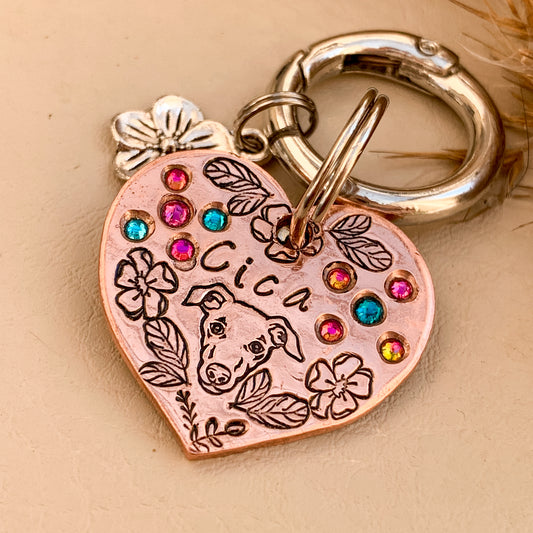 Whippet - egyedi fém kutyabiléta kristályokkal