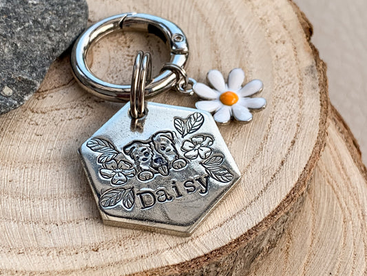 Flower Power - Egyedi fém kutyabiléta kristályokkal